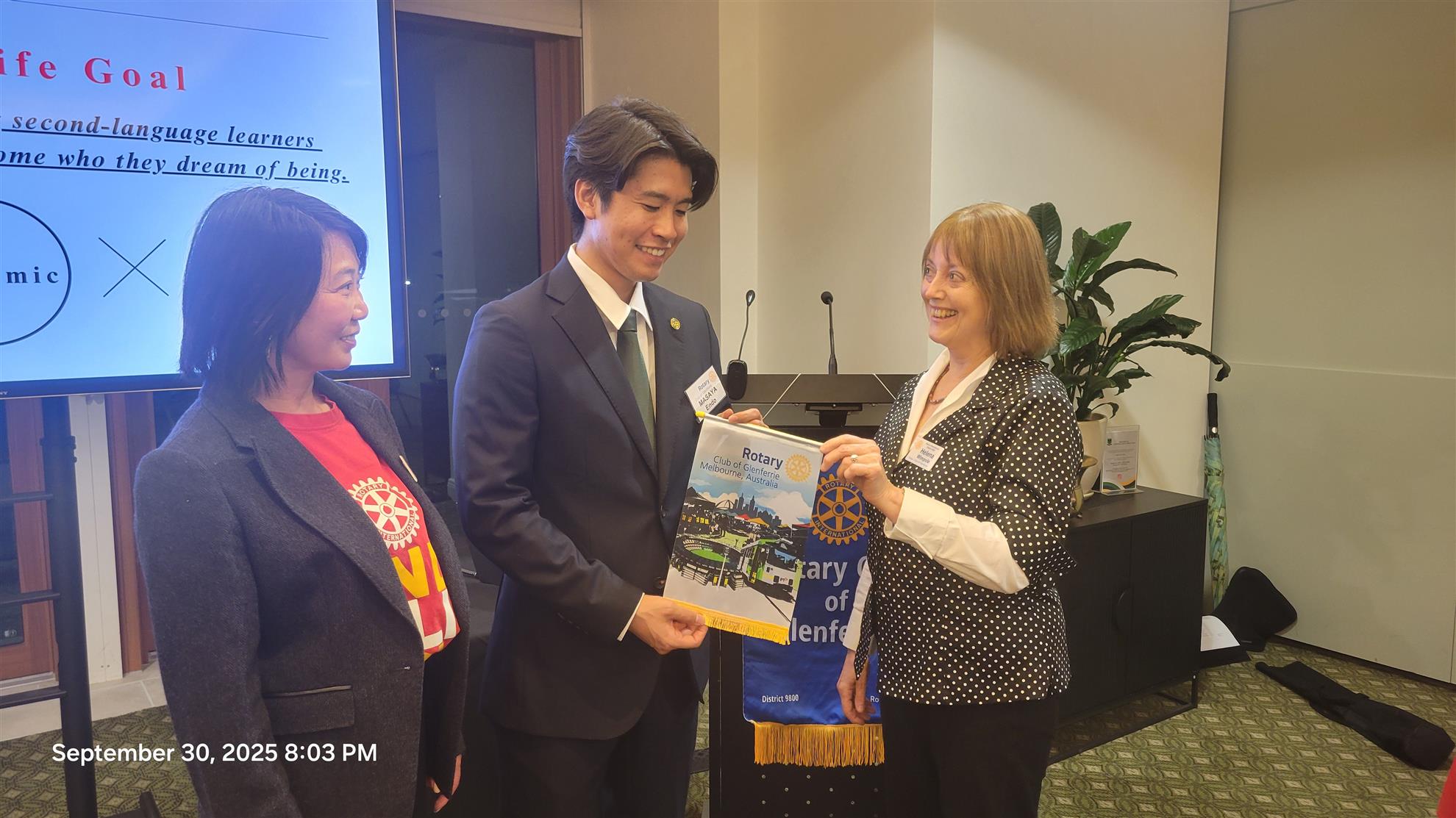 At the club meeting on September 30th, Rotary Global Scholar Masaya Endo shared his inspiring personal journey through a presentation titled “Shaping My Story.” Born and raised in Minamisoma City, Fukushima, Japan, Masaya reflected on his roots, his passions, and the life experiences that have shaped the person he is today.