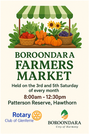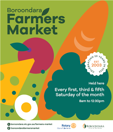 Photos from the special Boroondara Farmers Market to mark the 20th anniversary of the establishment of the Market by the City of Boroondara and the Rotary Club of Glenferrie